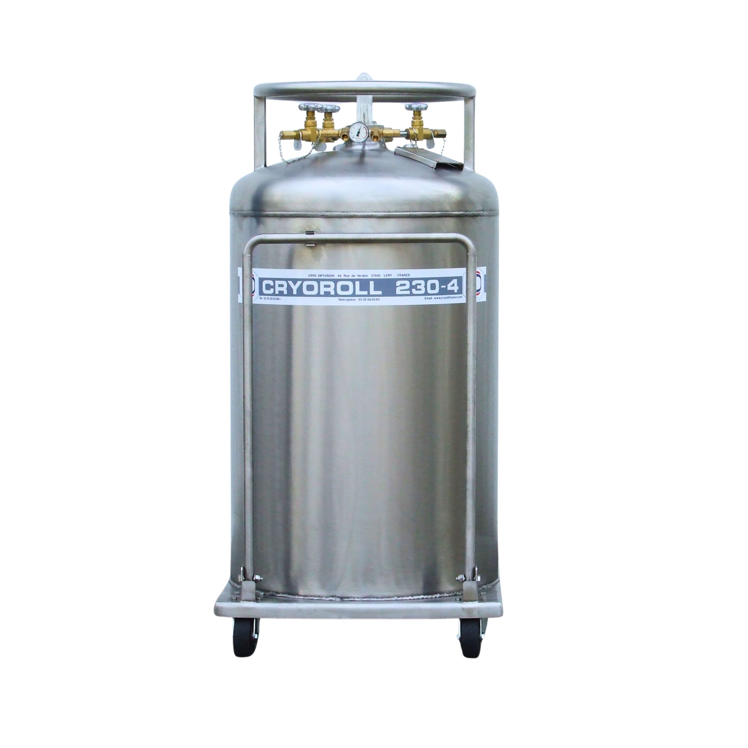 Le CRYOROLL 230 est un réservoir cryogénique vertical conçu pour le transport, le stockage et l’utilisation du liquide à basse pression (≤ 3.9 bar relatifs).